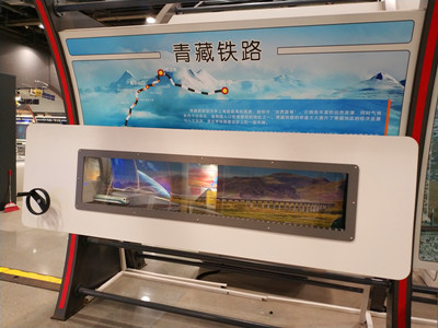 说到高铁,怎能忘了同样令人振奋的青藏铁路,操纵手柄,移动卷轴,我们就可以直观了解青藏铁路沿线的自然特征及主要城市。