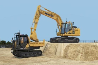 小松本次开发了两款作业车,一辆为挖掘机,一辆为履带式自卸车。挖掘机通过摄像头等探测障碍物,并以AI分析图像,也可识别位置、自行进行挖掘工作。至于履带式自卸车,可自行将砂土运往指定地点,一旦探测到人等障碍物便会停驶。两款作业车可配合使用,挖掘机前往挖土,自卸车前往接载砂土。