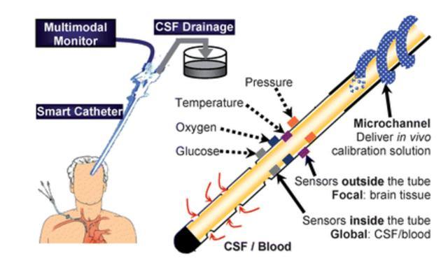 这些年,它们也在飞速发展。其中进展最快的,是脑脊液/腹水的多参数检测芯片。这类技术主要着眼于对颅内压,颅内温度,脑脊液葡萄糖浓度,疾病标志物浓度,各类离子浓度等进行实时监测。这类技术对急性脑损伤,开颅手术患者的疗效和生命体征监测有着至关重要的意义。除此以外,由于急性感染反应起病急,预后凶险,包括作者在内的多个研究组也在着手开发能实时检测数个感染免疫指标的可植入式传感芯片。