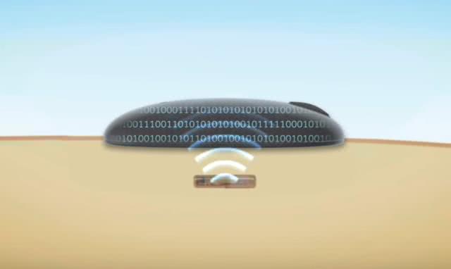 ▲皮下植入式血糖传感芯片示意图,光化学传感器将血糖信号传输至中转器,最终通过手机软件无线读取 (图片来自eversense 官方宣传片)
