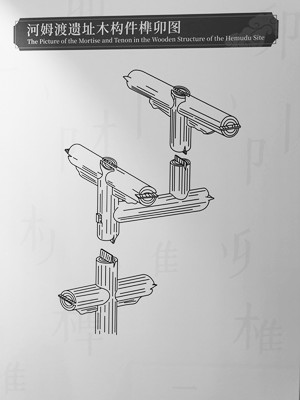 进入展厅,我们来到了展览的第一部分——“七千年前的发明”,主要展示榫卯的发明与起源,讲述榫卯悠久的历史故事。先Po一张老祖宗留下的木榫卯镇楼: