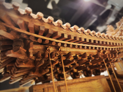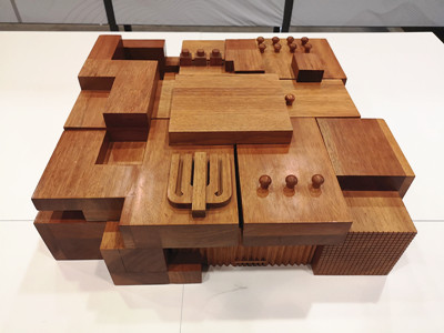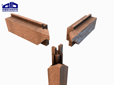 上图是按照1:24的比例制作的2015年米兰世博会中国馆模型,该馆采用胶合木为主材,以中国传统抬梁式梁架结构为灵感设计而成,在胶合木节点中暗置了钢结构节点,由传统的“木榫木卯”变成了“刚榫木卯”,有效强化了结构强度,实现了卯榫技术在现代建筑中的创新性应用。