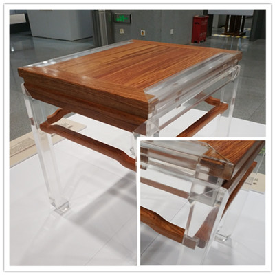 为了方便观众观察家具内部的榫卯结构,策展人员贴心地将部分木结构替换成了透明的亚克力材料,这样就可以直观清晰地看到隐藏于古典家具之内的榫卯结构了,下图这件展品,你找到“榫卯”的藏身之处了吗?