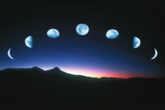 由于太阳、地球、月球三者的相对位置随月球绕地球运行而变化,在地球上看月球的角度不一样,月球就有了各种圆缺的景观,即各种月相的更迭。月球位于日、地之间的时间称为“朔”,月球的暗半球朝向地球,我们看不到它;朔之后的一两天,镰刀状的新月从西方的天空出现,凸面向着落日的方向;以后月球相对于太阳逐渐向东移动,亮的部分目益扩展,五六天以后成了半圆形,这时的月相称为“上弦”;日落时月球在天体子午线附近,再经过7天,便到了满月,称为“望”;满月以后,圆轮的西部日益亏缺,呈半圆形,称为“下弦”。
