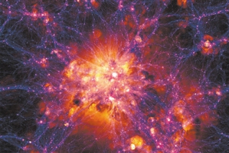 星系之间的气体也可以看成一种“宇宙食物”,为恒星的形成提供“营养”。通过模仿黏菌觅食的算法,研究人员在数据模型中终于找到了宇宙网中的细丝。