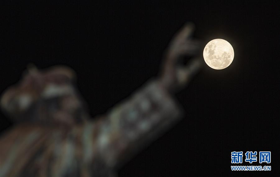 这是5月7日在贵阳拍摄的“超级月亮”。 “超级月亮”指的是月亮位于近地点时刚好出现满月。 新华社记者 刘续 摄