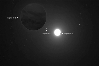 由夏威夷大学天文研究所的一组天文学家领导的团队,利用夏威夷莫纳克亚山脉的凯克望远镜的高分辨率光谱仪,发现了先前未被发现的、在开普勒-88系统内绕行的第3颗系外行星,被命名为开普勒-88d。在开普勒-88这一系统内,另外两个行星是开普勒88-b和开普勒88-c,借助美国国家航空航天局现已退役的开普勒太空望远镜(2018年10月30日正式用尽燃料而停止运行)的帮助,科学家曾得以确认开普勒-88系统中行星轨道,其中,开普勒88-b和开普勒88-c被认为具有“奇怪的、惊人的动态”——两颗行星绕母恒星一周分别需要11天和22天。而此次新发现的开普勒-88d,却需要4年才能绕母恒星运转一周。