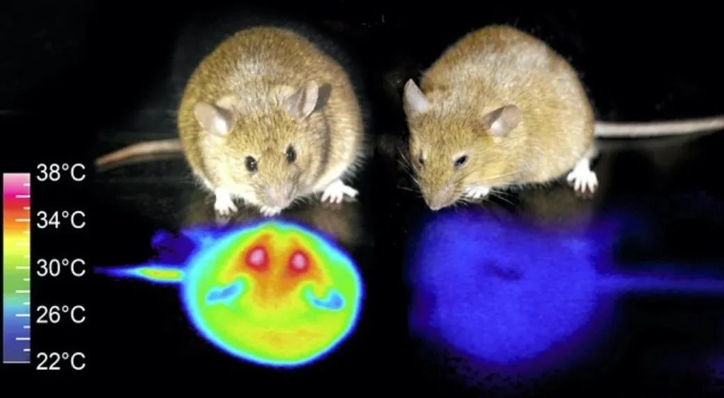 休眠状态小鼠(右)和正常小鼠(左)体温对比 | ref3