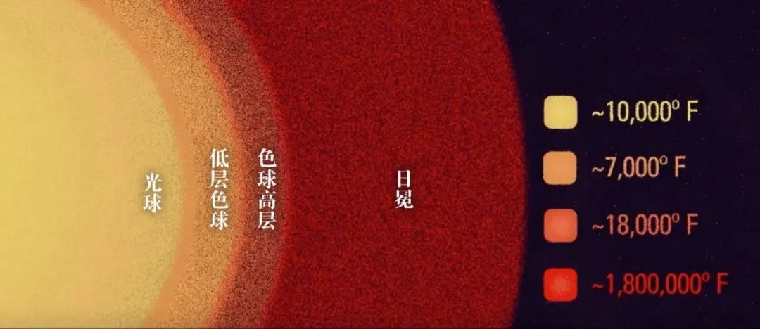 太阳核心的温度可以达到匪夷所思的1500万摄氏度,在这之外依次包裹着辐射层、对流层、光球层和大气层。光球层是人类肉眼可见的太阳表面,只有到了光球层,太阳才发出明亮的可见光。光球层上较为寒冷、黑暗的区域是我们熟悉的太阳黑子。光球层之外是太阳的大气层(含色球层),日冕是太阳大气的最外层。|umich.edu