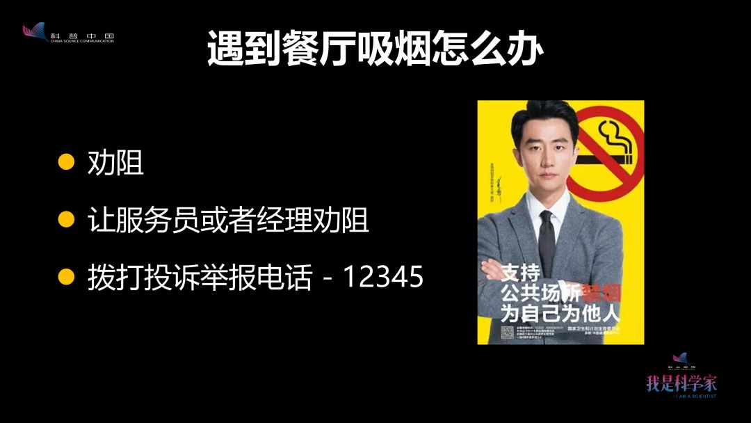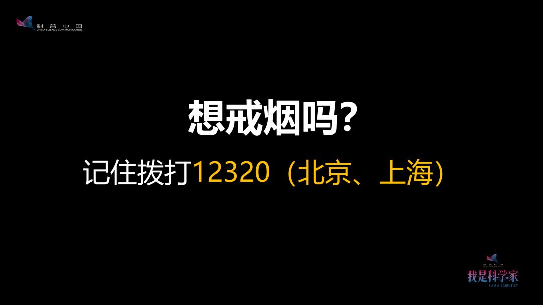 我于去年11月份离开工作20年代中国疾控中心控烟办。虽然离开了这个岗位,我还继续在中国控烟协会、北京控烟协会继续做控烟的工作。我觉得科普工作很重要,我愿意一辈子做这件事情。我相信,健康中国必定是无烟中国,谢谢大家。