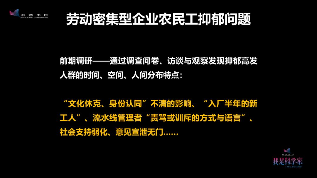 2008年“富士康事件”引起了社会关注,也引起了世卫组织的关注。世卫组织专门投资了一个招标课题:企业农民工抑郁的早期识别与健康教育干预。