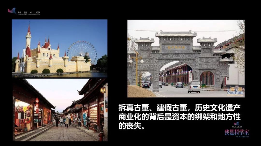 现在很多地方都在进行历史街区改造,想把文化遗产包装成旅游景点,但经常拆真古董、建假古董,搞了好多看起来旧的新古董出来。里面的道路也新了,原来生活在这里的人也赶走了,连路名都改变了,或者把一些不同地方的古董移花接木拼凑在一起。其实这样的做法并不真实,完全是被资本绑架了,整个地方的特色文化严重丧失了。