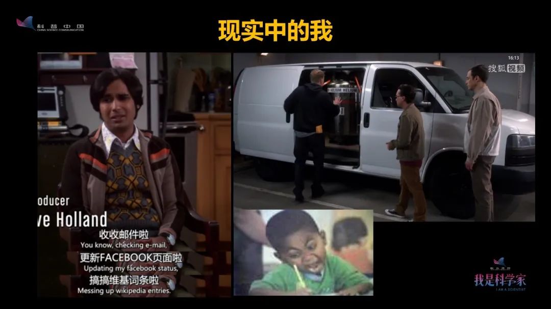 这些截图取自于《生活大爆炸》,我非常喜欢这个美剧。我在德国留学的时候,我的同事有一半喜欢一半不喜欢。喜欢是因为它跟自己的生活实在太像了,不喜欢也是因为跟自己太像了。