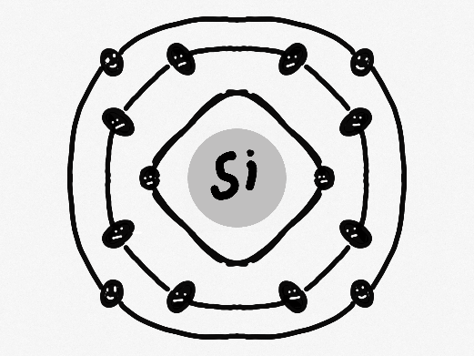 在硅晶体中,每个硅原子的上下左右都相邻一个硅原子,正好硅最外层有四个电子,它就会和相邻的硅原子共用这些电子,这样每个硅原子最外层就凑齐了8个电子。完美!
