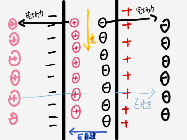 经过层层铺垫,我们知道了硅为何会被称为半导体,以及为何两种半导体拼接可以得到一个自带电场的结构——PN结。铺垫结束,该轮到光伏效应出场了!