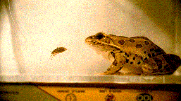 于是诺埃尔做的第一件事,就是跑到亚特兰大动物园,用高速摄影机拍下各种青蛙捕食虫子的视频。这个倒霉的虫子正是蟋蟀。