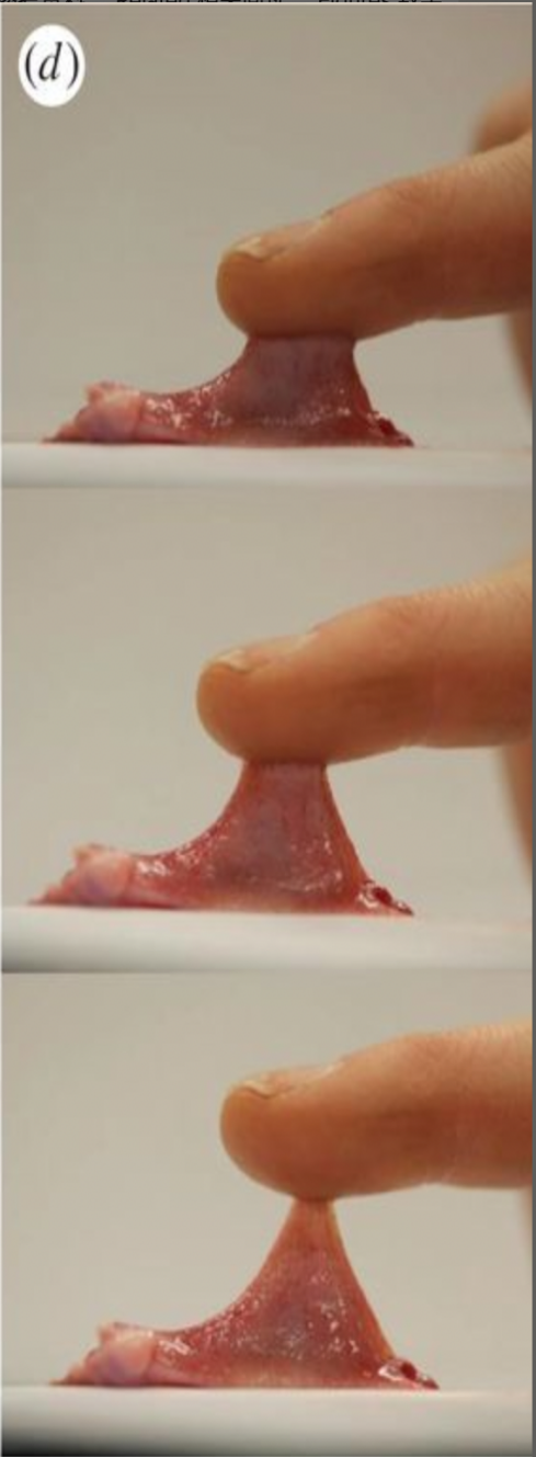 但其实,青蛙唾液只有在某种情况下才这么粘,其他时候粘度则不太高。为什么会这样?
