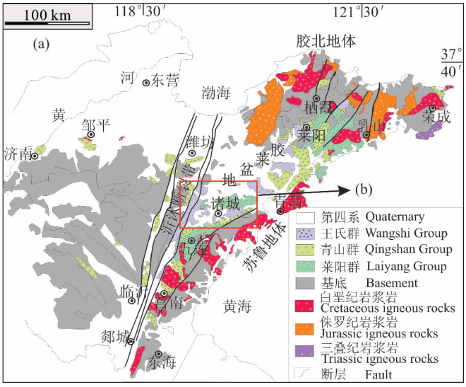山东地区中部以郯庐断裂带为界,分割为鲁东、鲁西两部分。胶莱盆地位于郯庐断裂带东侧的鲁东地区,盆地的东南部为苏鲁地体,北部为胶北地体。