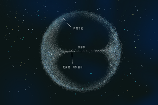 随着科学家不断深入研究,人们发现,冥王星远不是太阳系的边界。我们继续向外观测就会发现,还有很多小行星,直径小的数千米,大的上千千米,这个区域叫柯伊伯带。