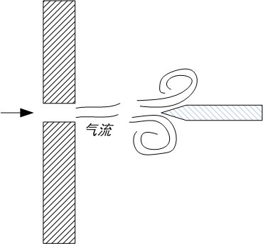 当气流以一定的角度冲击吹孔对面的锐棱,气流分隔为两股交替分裂的旋涡而形成空气层脉动,这个声源带被称为边棱音。