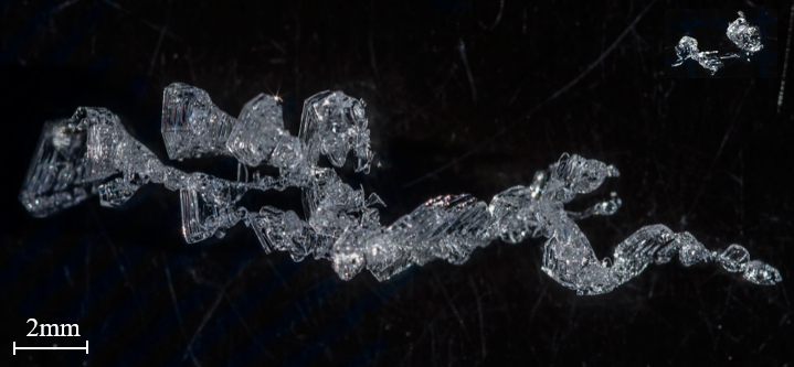 就这样,冰晶的角棱不断增长,逐渐成为枝叉状。之后又因为同样的机理,在各个枝叉和角棱处长出新的小枝叉来,星状雪花逐渐形成。