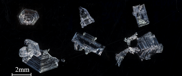 典型的柱状、片状和星状雪花(图片来源:作者自制)