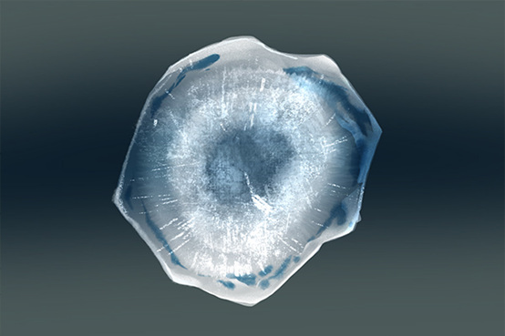 小冰珠向下降落,结果将积雨云中更多的水汽吸附在表面,接着如果再次遇到上升气流,小冰粒就会被再一次抛到高空,重复上一次的结冰过程,继续变大。当冰球增大到一定程度后由于重力原因再次下落,当遇到上升气流又再一次被抛到高处时,在已经形成的冰粒上继续包裹形成新的一层冰壳。正因如此,如果你碰巧切开一个刚成形还没来得及融化的冰雹时,就会发现冰雹内有像年轮一样的圈数,这个圈数就代表了冰雹上下翻滚过几次。