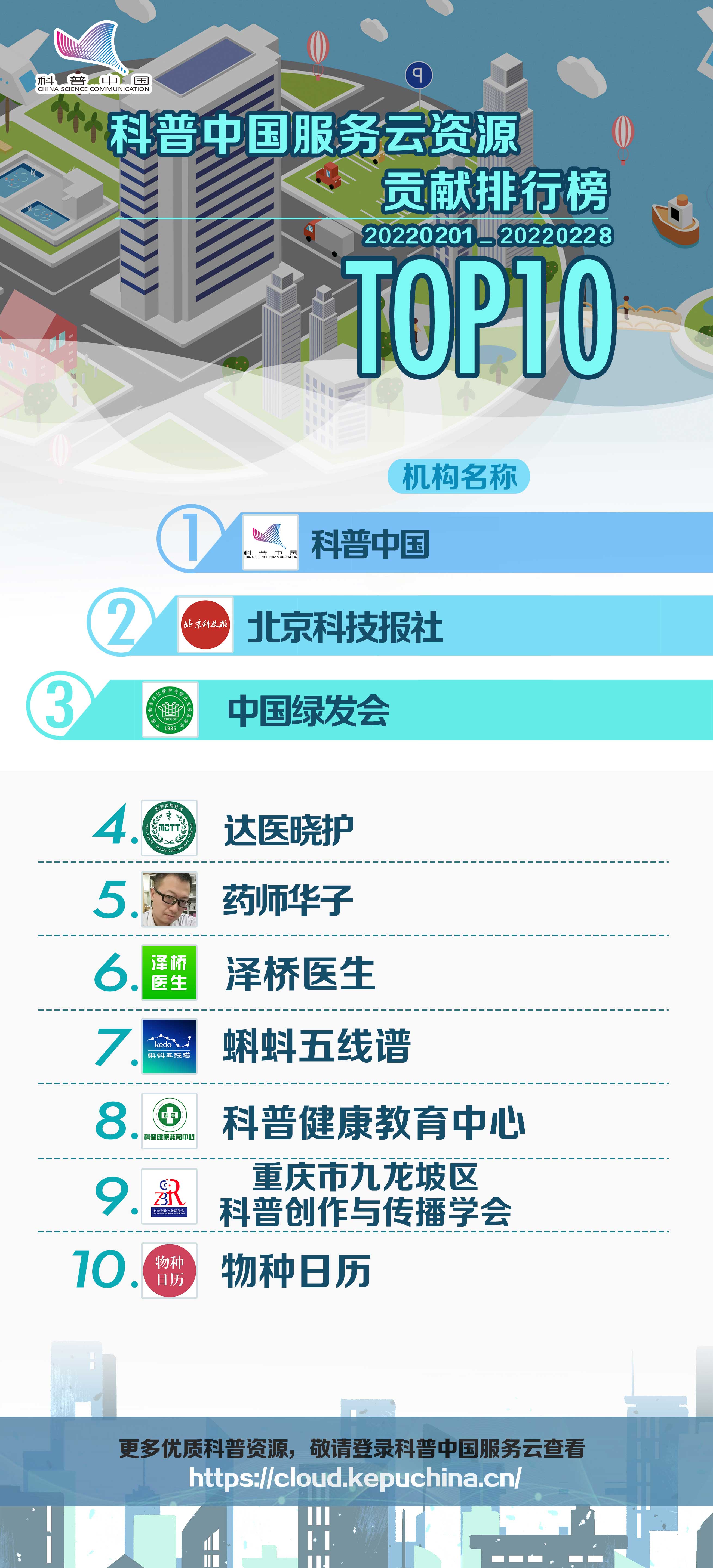 2022年科普中国服务云资源二月榜单发布科普中国网 2022-03-18 |
