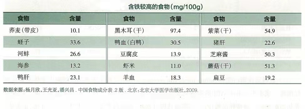 动物血、肝脏、瘦肉等动物性食物,以及黑木耳、红枣、葡萄干等植物性食物含铁比较丰富。专家建议,孕中、晚期每天增加20~50g红肉,可提供铁1~2.5mg,每周摄入1~2次动物血和肝脏,每次20~50g,可提供铁7~15mg。
