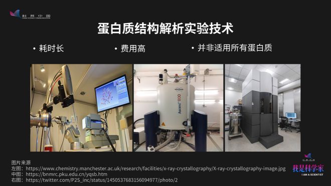首先,这些方法需要非常长的时间去测定哪怕一个蛋白质的三维构型。另外,它们的费用非常高。更致命的是,并不是所有蛋白质的三维构型都可以用这些实验技术给测出来。所以,我们需要另外想出方法去获得定蛋白质的三维构型,这也是为什么我们想做蛋白质结构预测——我们想通过计算技术去把蛋白质的三维结构给算出来,而不是用实验仪器测出来。