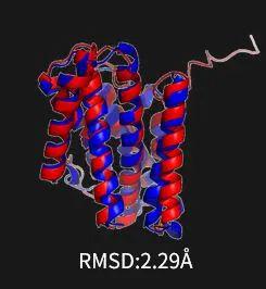 这是我们当时预测的一个有两百多个氨基酸的膜蛋白的结构,误差大概是2.29个埃,已经非常接近用实验技术解出来的结构的分辨率了。
