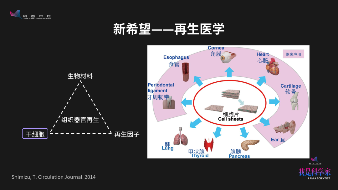 这些年来,人们把器官再生的希望都放在新的一个学科上,叫再生医学,也就是我今天给大家要讲的一些故事。大家可能对再生医学多少有些了解,因为很多人都听说过干细胞,但这里面其实存在对再生医学理解的片面性,因为干细胞虽然是再生医学中很重要的部分,但不是全部。