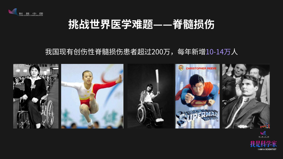 在我国,每年大概有十到十四万因为事故、工伤或疾病导致的脊髓损伤。在我们国家现生活着两百万以上的脊髓损伤病人,大部分是年轻的个体,虽然他们的生存力没有大的变化,但沉重的经济负担和护理工作会把家庭拖垮。