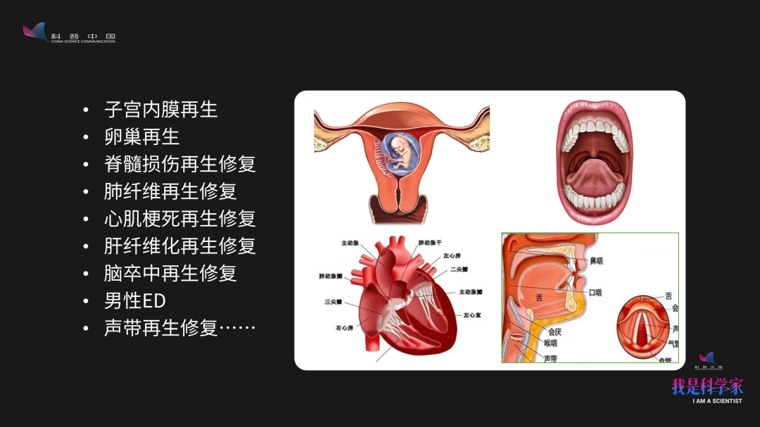 讲了这么多,其实我还回想起一些梦想。2014年我因为子宫内膜再生的成果被选为中央电视台年度科技创新人物,当时我在讲演的时候就提出个幻想。我说人跟汽车是一样,汽车有4S店可以定期保养,有问题的可以维修,有故障的可以换零件,我想再生医学也给人类提供了一个梦想,也可以达到给人类的身体进行维护维修,甚至进行零件的置换。到今天我站在舞台上,我觉得我给大家带来的这个梦想正在变成现实。
