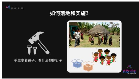 曾经有一个国外的项目,想利用信息化的产品,提高现场调查的能力水平。但当他们来到非洲一个偏远的山村,却发现这里没有电、没有水,大家也都不识字,所以他们快速地转变方法,通过几个不同颜色的纸盒子,让大家投票来解决了这次调查。