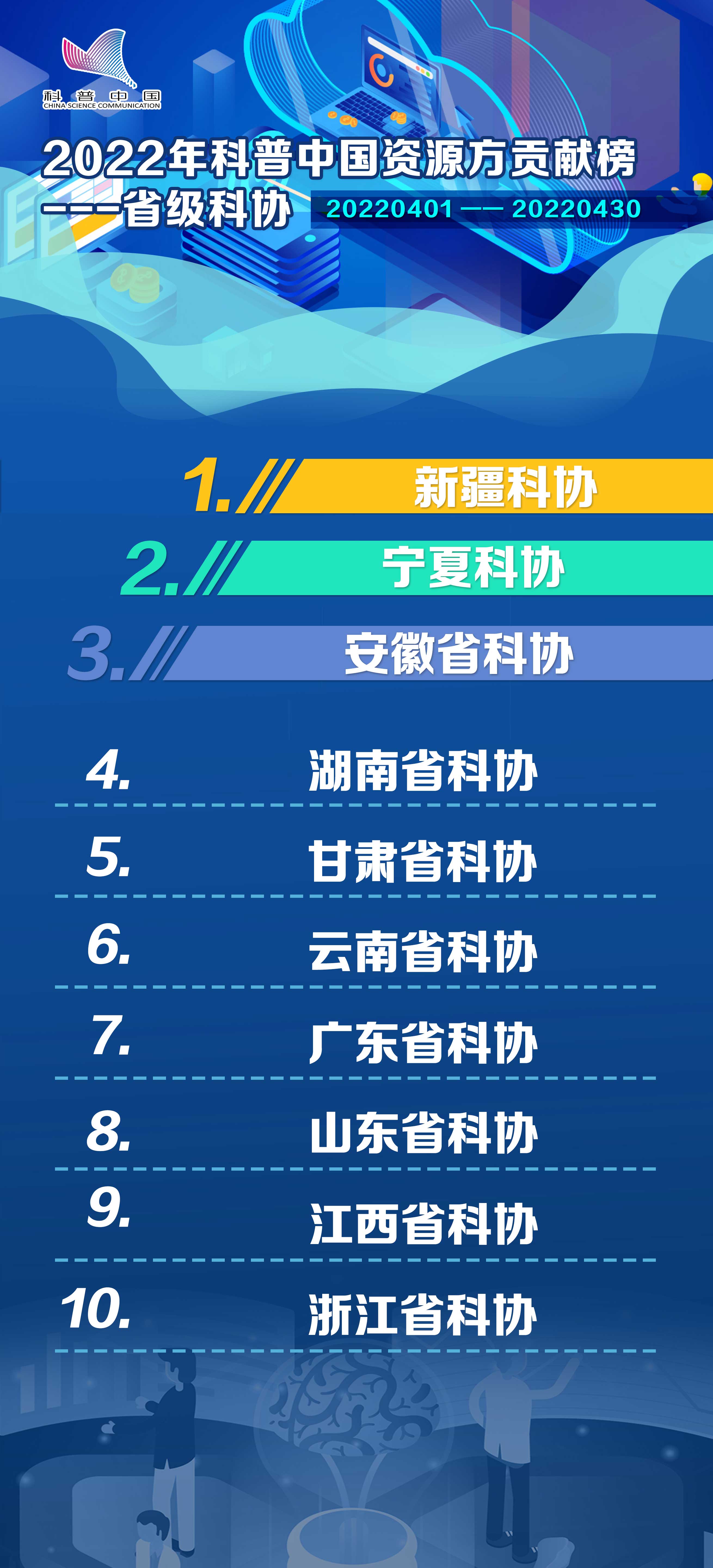 2022年科普中国资源方贡献榜-省级科协 四月榜单发布科普中国 2022-06-02 |