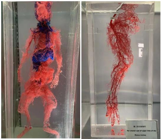 下面这张图就是我们平时示教的两个标本。红颜色的都是毛细血管,能清楚地看到毛细血管的分布网络。