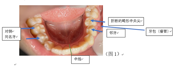 此外,由于牙齿刚萌出,牙根并没有发育完全(此时牙根只发育到根长的2/3左右),如果这时候出现畸形中央尖折断,牙根生长发育常会受到影响,如果不及时治疗,有可能会导致牙根吸收甚至牙齿早失。