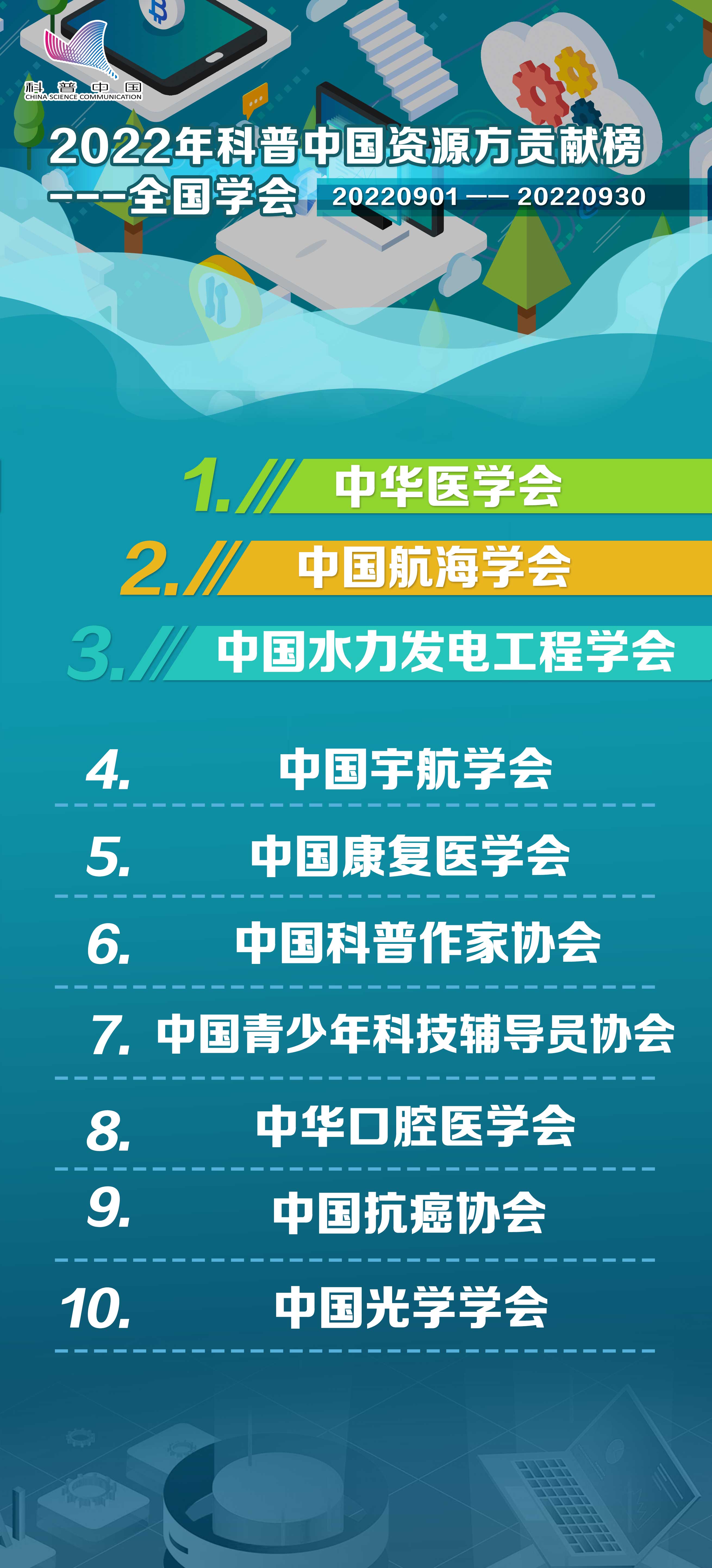2022年科普中国资源方贡献榜-全国学会 九月榜单发布科普中国 2022-10-18 |