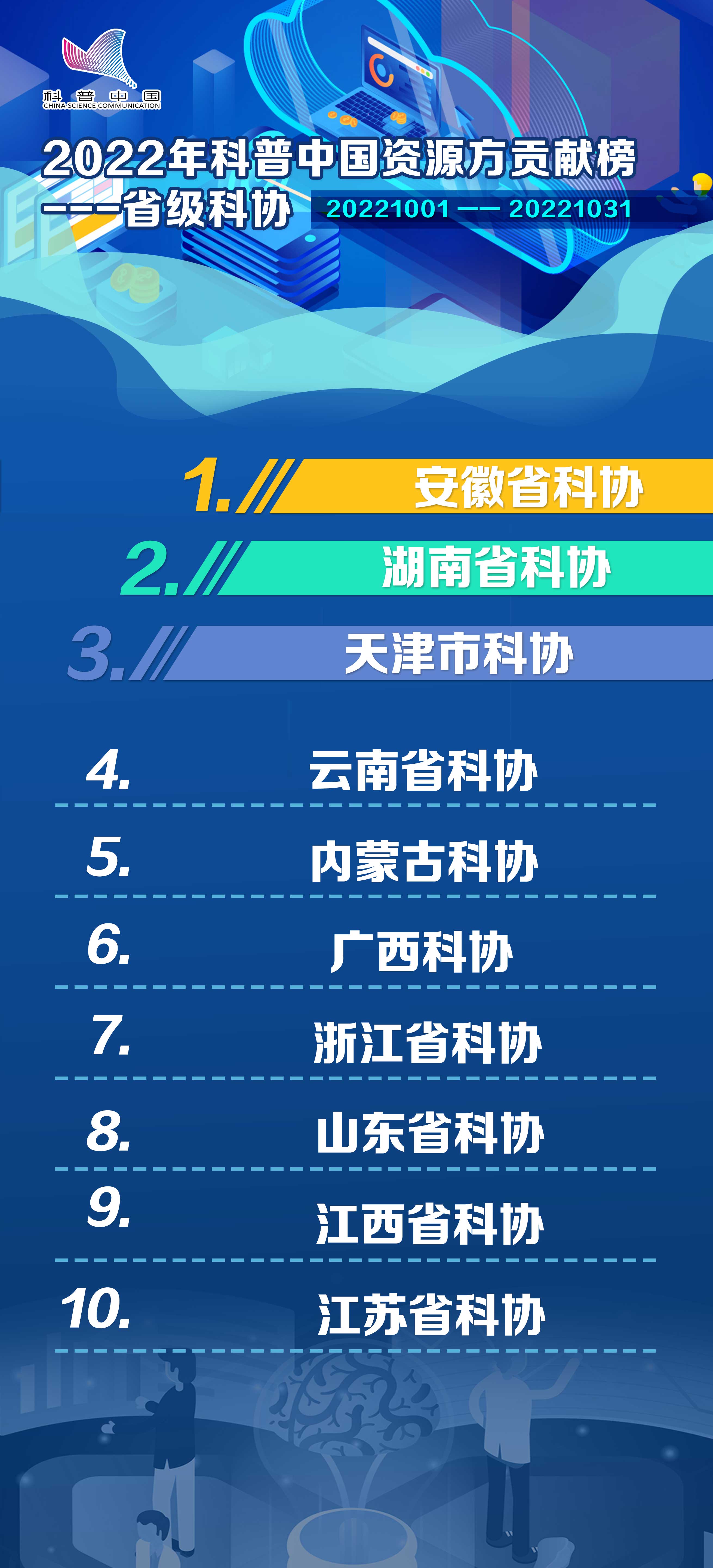 2022年科普中国资源方贡献榜-省级科协 十月榜单发布科普中国 2022-11-14 |