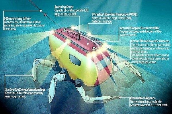 CrabsterCR200是一种有助于探险家和科学家进行探索的新工具,巨蟹兄重达635公斤,它可用6条腿稳定身体,在强大水流中低下“头”,翘起“臀”,迎着水流前进。它配有11部相机,其中包括通过反射声波在浑浊海水中识别方向的声学相机。被设计用来像真甲壳纲动物一样在海底移动,通过复杂技术稳定自身。可用于科学探索项目,安装用于石油和天然气的管道等设施。