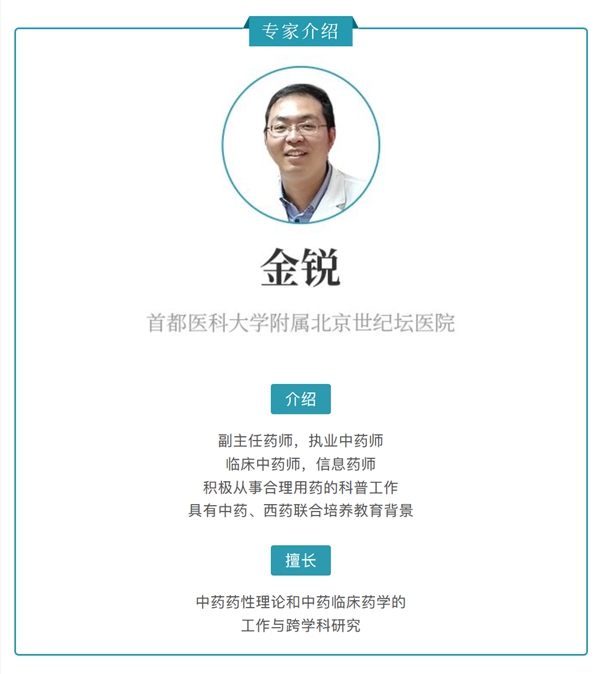 文字:首都医科大学附属北京世纪坛医院副主任药师金锐