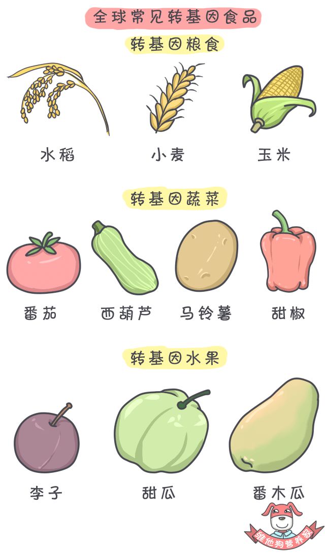 截至目前,全球被批准商业化种植或食用的转基因产品共 24 种,狗狗来列举一些
