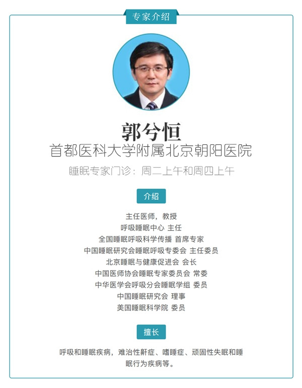 文字:首都医科大学附属北京朝阳医院呼吸睡眠中心主任、主任医师郭兮恒
