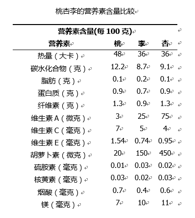 桃李杏含有丰富的维生素和多种人体需要的微量元素,膳食纤维含量高。膳食纤维在肠道能促进肠道蠕动,有降低胆固醇的作用,有利于预防动脉粥样硬化,还能与肠道中的有害物质如铅结合,促使其排出体外。