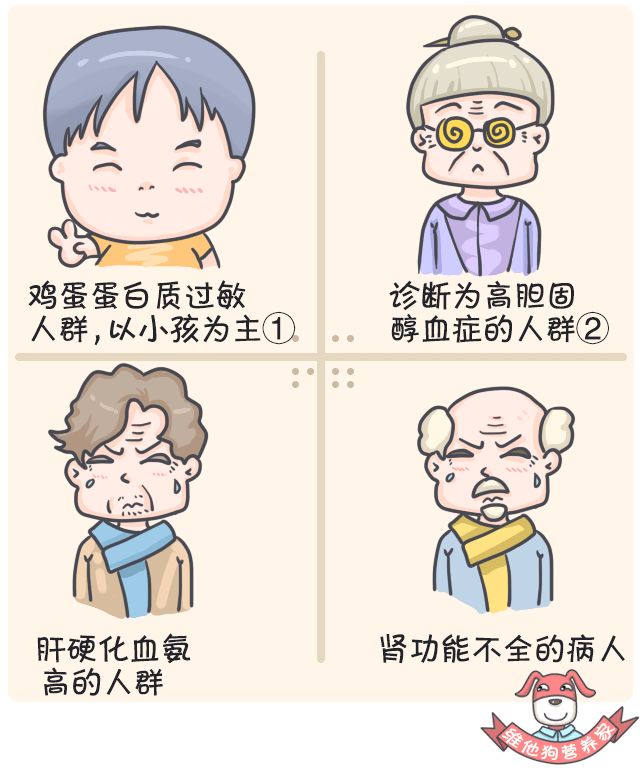 注释①:鸡蛋蛋白质过敏的人群 尤其是一岁以内的小孩,添加辅食一定要注意是否蛋白质过敏(可做一个过敏源测试),同时不建议将蛋黄作为补充铁的来源,因为吸收利用率不好。