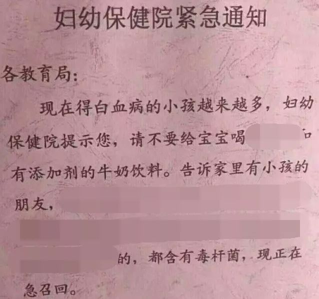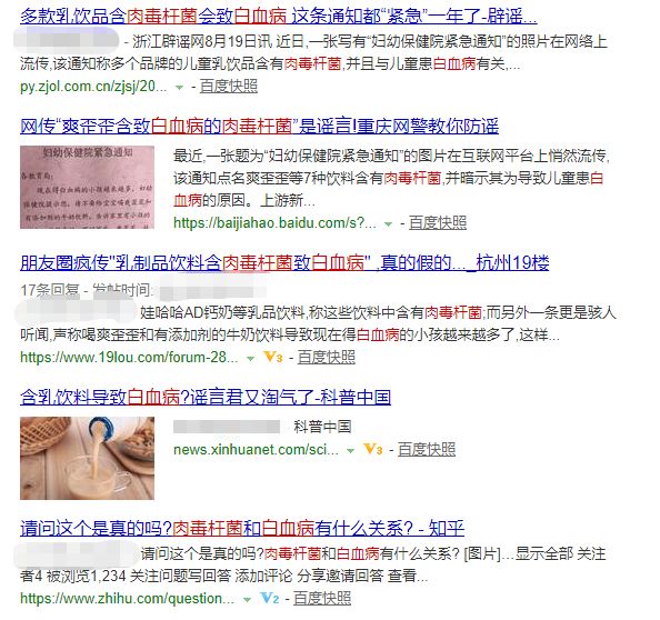 最近,有关儿童牛奶饮料含有肉毒杆菌会引发白血病的谣言又在网络上流传开了。