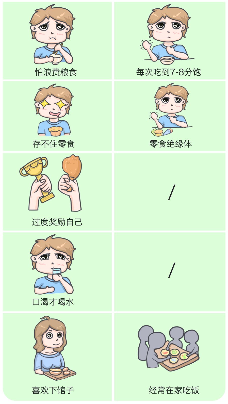 5. 食量不大,每次吃到7-8分饱