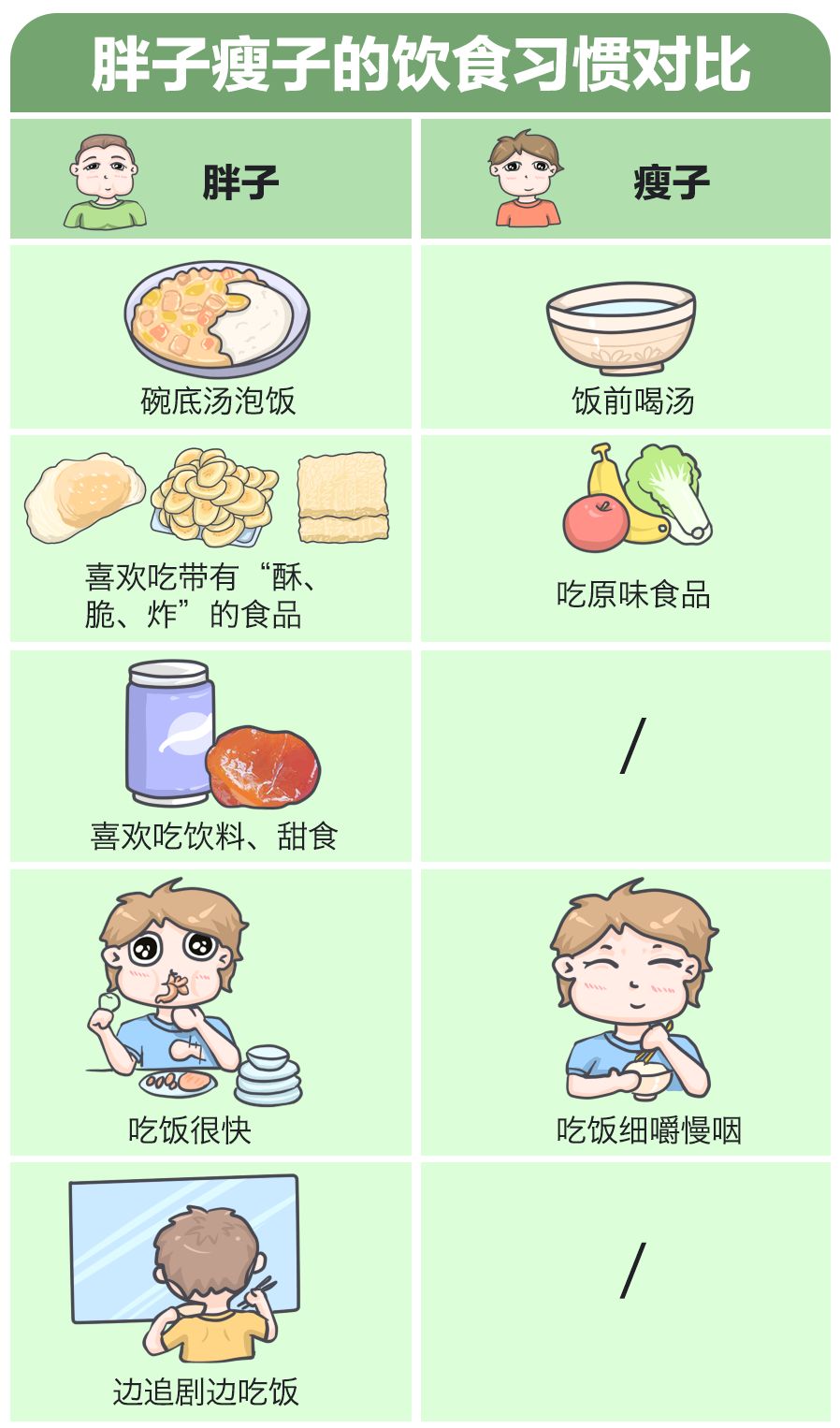 同理,这里的易胖体质,就是因你的生活习惯不健康导致,到底有哪些不良的习惯呢?