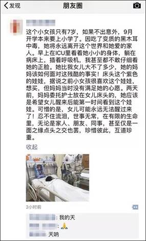 不过,最近盆友圈都在疯传一条消息称,“杭州一家因为吃凉拌木耳结果出现食物中毒,甚至一个孩子因为多脏器衰竭而生命垂危,处于急救状态。”